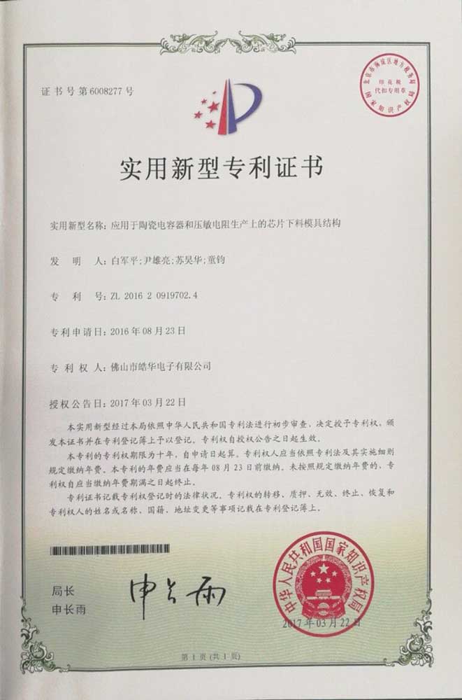 佛山市皓華電子有限公司成立于一九九三年,是一家生產全系列高、中、低壓、安規瓷介電容器,壓敏電阻器,獨石電容器的生產廠家。產品廣泛應用于IT、通訊、家電、儀器儀表、充電器等設備中。公司員工近三百人,其中有多名本科及碩士學歷……
